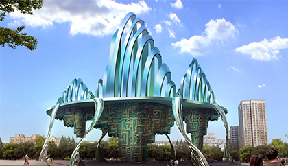 雕塑結(jié)合聲、光、電技術(shù)及不同的材料,創(chuàng)作出全新設(shè)計(jì)理念的作品